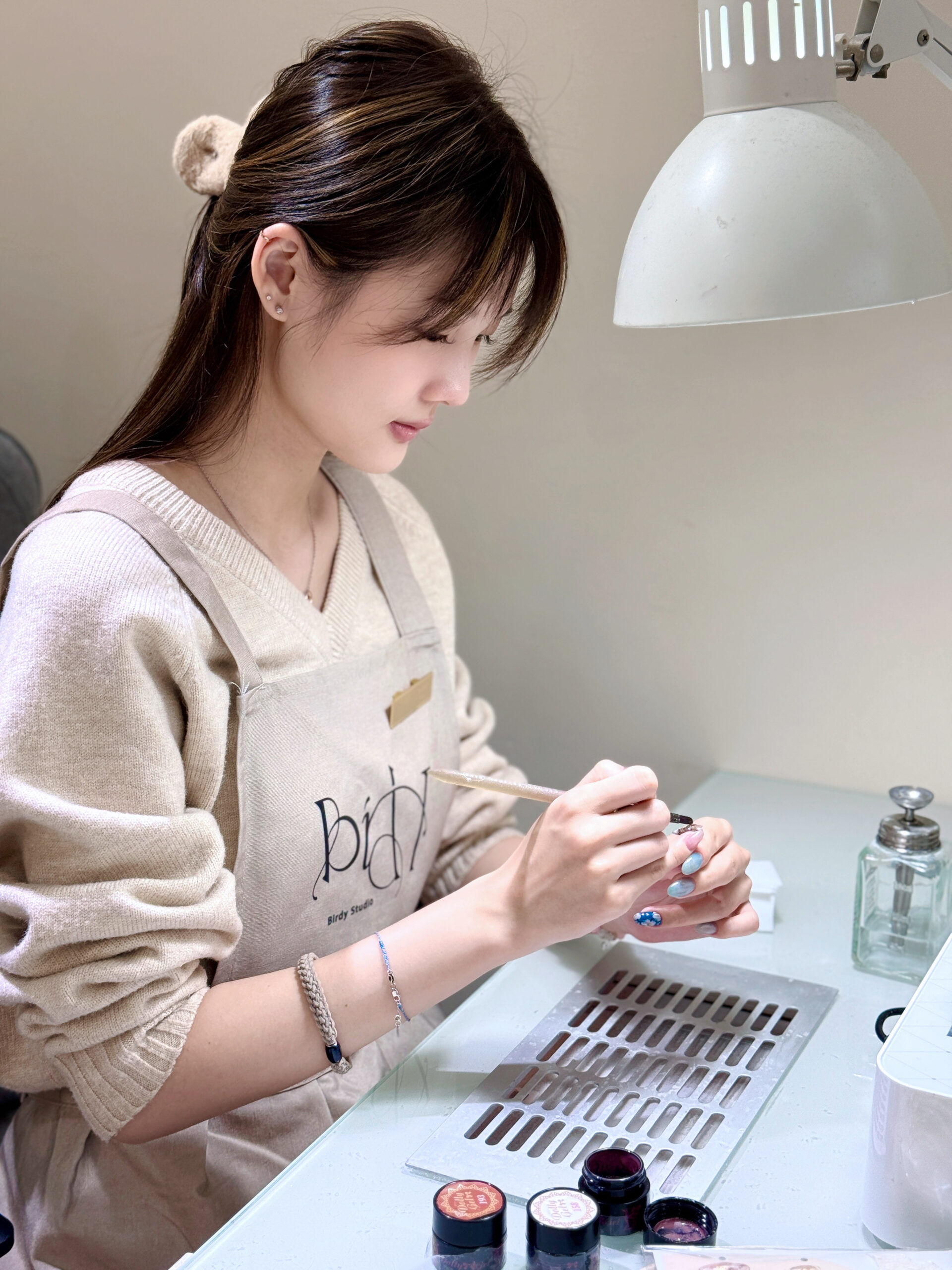 抱持著對技術的專注與自我要求,我投入多項專業訓練,取得台灣美容證照,也前往日本考取 JNEC、JNA 美甲證照。在持續累積的現場經驗與技術實作中,我逐步凝練出屬於自己的美學方向。